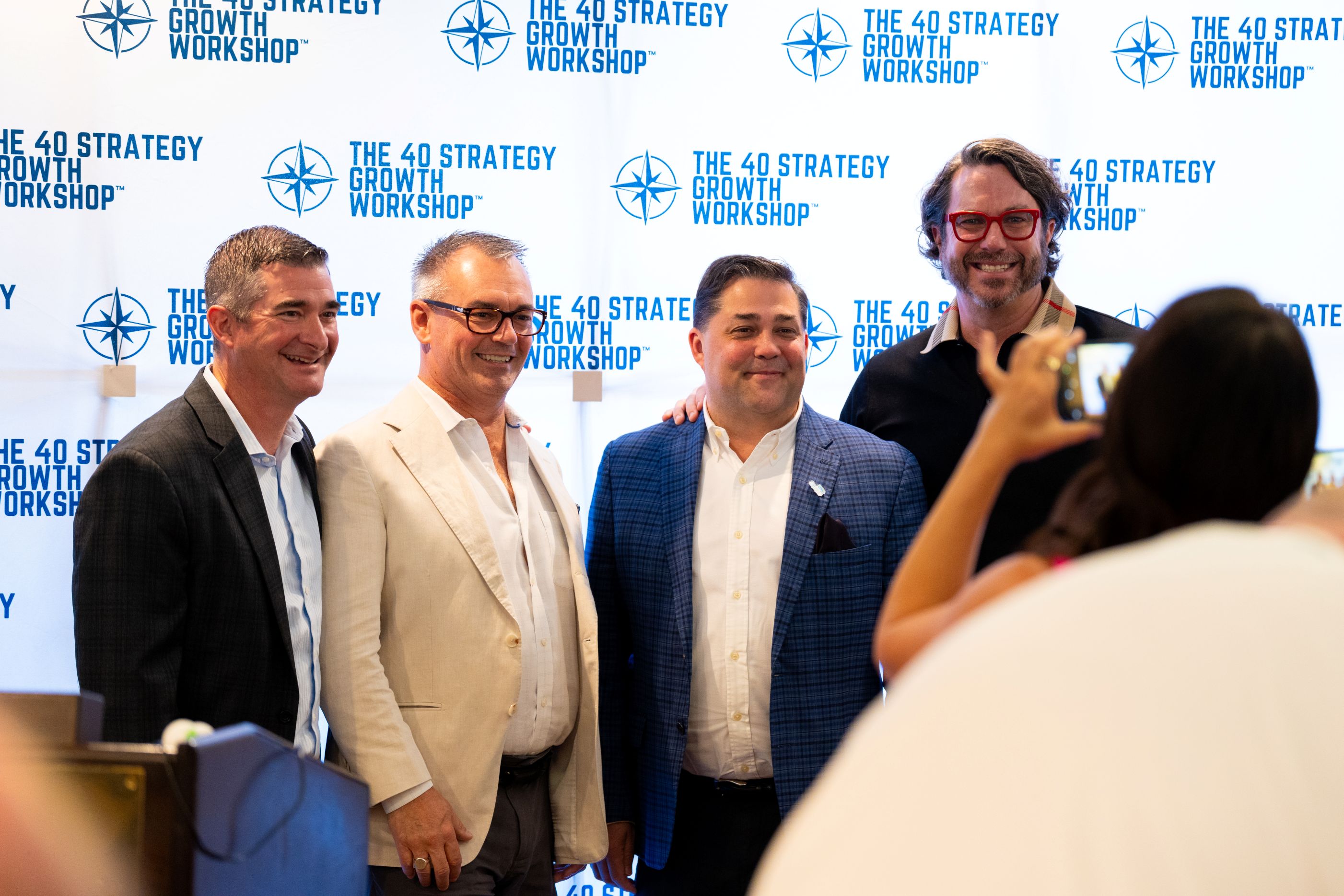 Carl J. Cox, founder of 40 Strategy, with inaugural workshop speakers George Sandmann, CEO of Growth-Drive and author; Trey Taylor, CEO of Taylor Insurance Services and author of A CEO Only Does Three Things; and Tommy Breedlove, author and founder of Legendary.